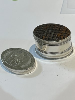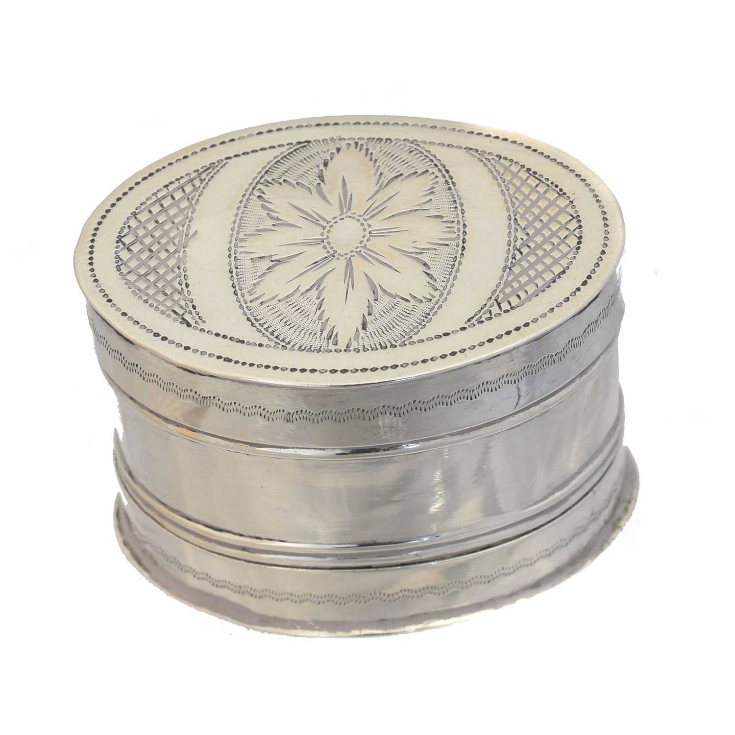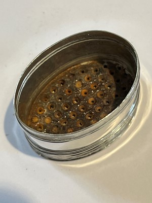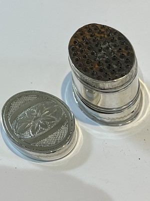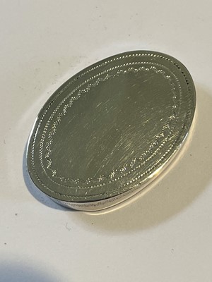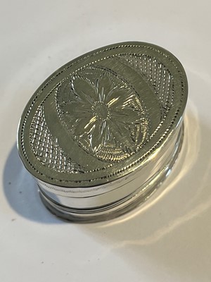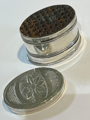 A George III silver nutmeg grater, oval shaped with engraved floral detailing, Joseph Willmore, Birmingham, 1807, gross weight 0.41ozt.
