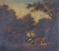 Lot 611J. Coomans, 19th century, Rural landscape with figures, oil on canvas.