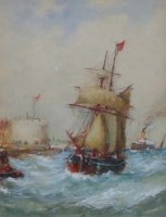 Lot 602Charles John de Lacey, Thames scene with various shipping, oil.