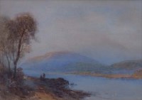 Lot 385Thomas Leeson Rowbotham, Lake view with figures, watercolour.