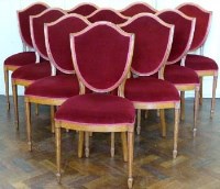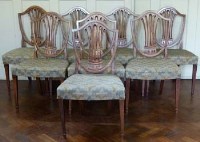 Lot 413Eight Hepplewhite style mahogany framed single chairs.