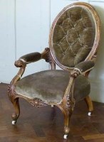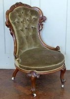 Lot 414Victorian walnut framed nursing chair.