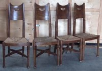 Lot 450Four Arts and Crafts oak and rush seated chairs