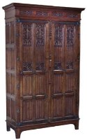 Lot 451Gothic revival oak wardrobe with panelled doors
