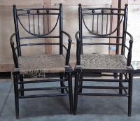 Lot 453Pair of Arts and Crafts Ebonised armchairs possibly by Heals