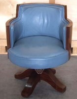 Lot 501Mahogany swivel office chair, with grey / blue