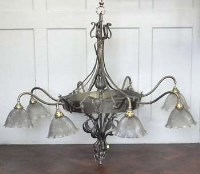 Lot 565Large brass Art Noveau chandelier with eight