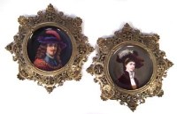 Lot 268Pair of cherub mounted porcelain mirrors.