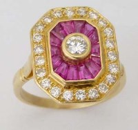 Lot 330Art deco style ruby and diamond lozenge cluster