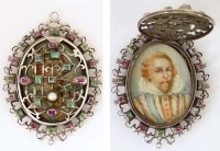 Lot 344Silver locket with pearl, emerald and rubies with