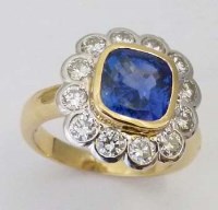 Lot 348Sapphire and diamond cushion cluster ring in 18ct