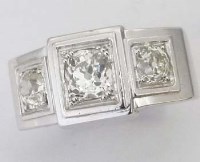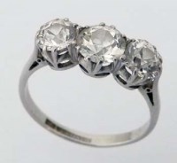 Lot 389French 18ct white gold three stone diamond ring