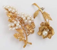 Lot 374Two 9ct gold leaf spray brooches set with pearls