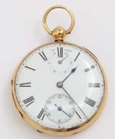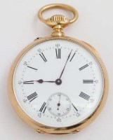 Lot 392Open faced stem wind 18ct gold pocket watch