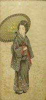 Lot 411Six Japanese watercolours on silk.