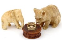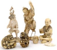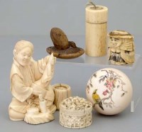Lot 426Japanese ivory okimono, three boxes and two bone