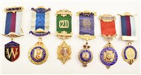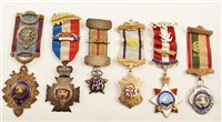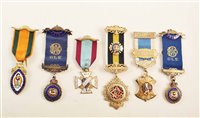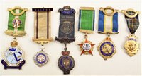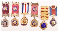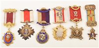 Lot 285Thirty one RAOB silver, silver gilt and enamelled medallions with ribbons and bars, assorted lodges, dates ranging from early to late 20th century.