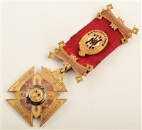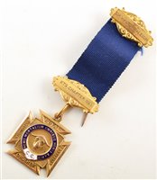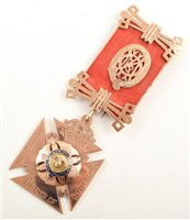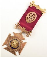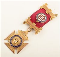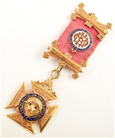 Lot 224Small boxed 9ct gold and enamelled RAOB Vice President's medallion