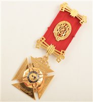 Lot 215Boxed 9ct gold and enamelled RAOB medallion, of Maltese cross design, for lodge No. 34 dated 1955.