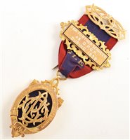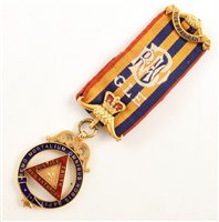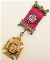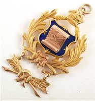 Lot 273Small 9ct gold and enamelled RAOB Secretary's medallion
