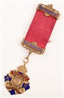 Lot 293Thirty RAOB silver, silver gilt and enamelled medallions with ribbons and bars, assorted lodges, dates ranging from early to late 20th century