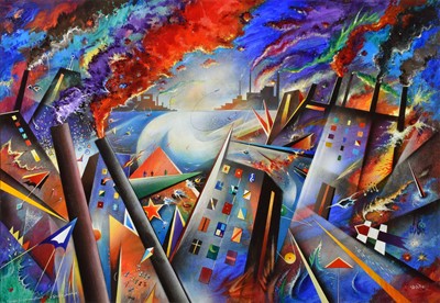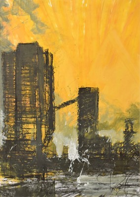 Lot 271§ David Wilde (British 1918-1978) "Dockland; The Consuming Flames of Industry Unleashed"
