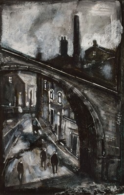 Lot 291§ David Bez (British 20th/21st century) Northern street scene with bridge and figures