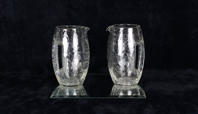 Lot 31Koloman Moser (Austrian 1868-1918) for Loetz Two Clear "Crackle" Glass Jugs or Pitchers