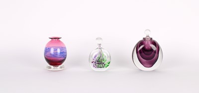 Lot 67§ Iridescent Glass Paperweight by Norman Stuart Clarke (British, Active 20th/21st Century) With a "Beach" Vase by Martin Andrews & a Scent Bottle by Iestyn Davies