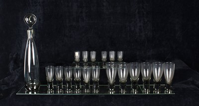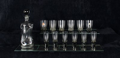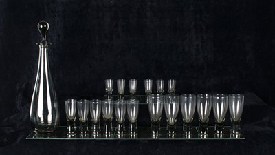 Lot 17Per Lütken (Danish 1916-1998) for Holmegaard Tall "Aristokrat" Decanter with Sets of Six "Canada" White Wine, Sherry and Shot Glasses