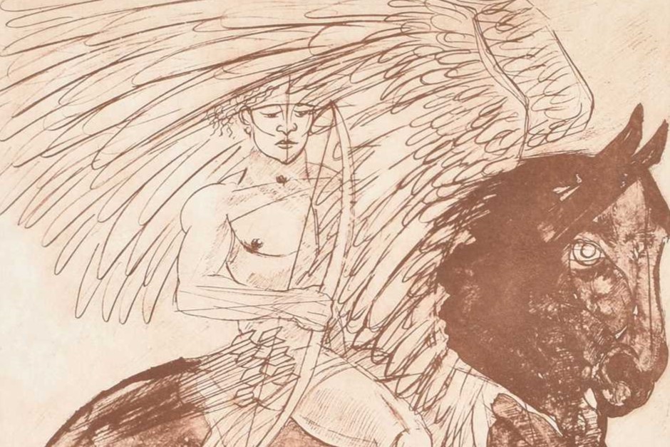 Elisabeth Frink, born in Suffolk in 1930, is best known as a sculptor and printmaker. She studied at the Guildford and Chelsea schools of art in the 1940s and early 1950s, and mainly used men, and birds and animals as her subjects.