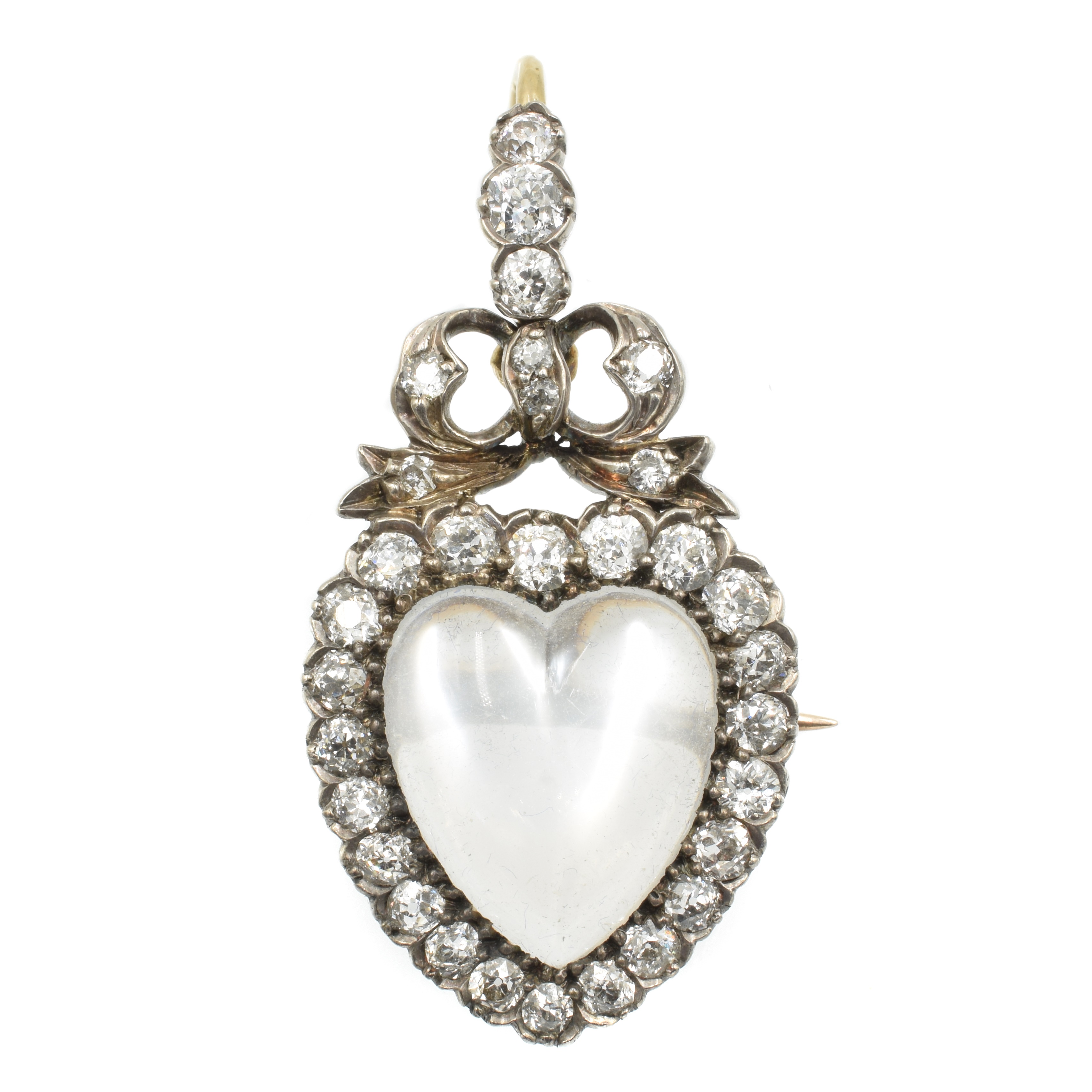 A Circa 1890, 18ct gold and silver, diamond and moonstone set pendant