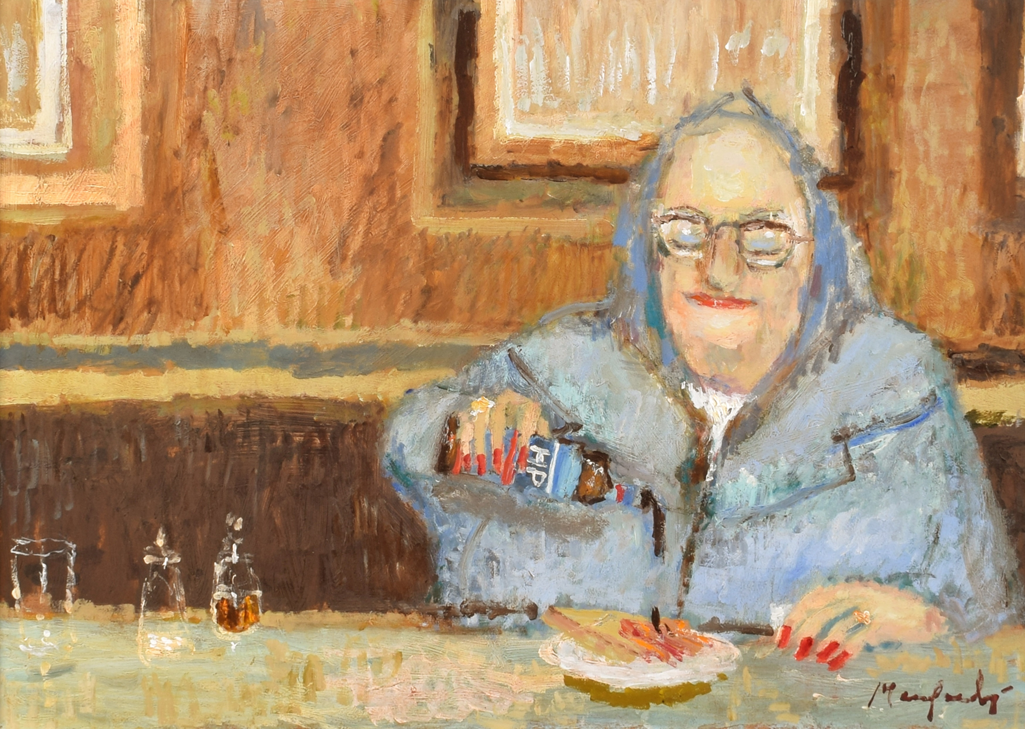 Lucy Manfredi M.A.F.A. (British 1974-), "Brown Sauce", oil on board. Sold: £700